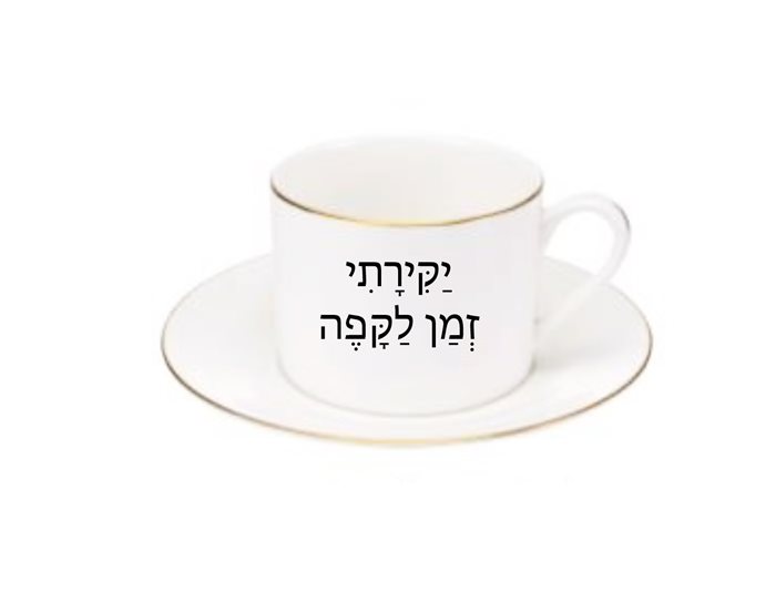 הדפסה על ספל קפה עם צלוחית מעוטר בפס כסף